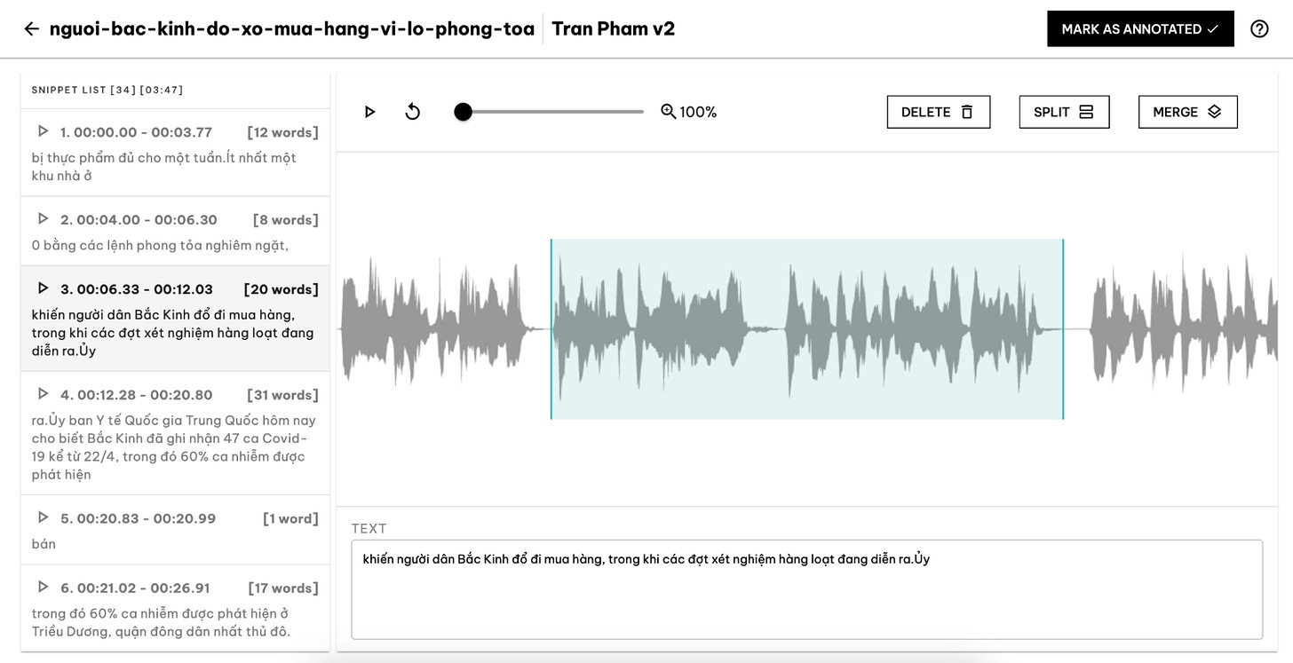 A Vietnamese dataset for text-to-speech (TTS) has been released using the advanced annotation tools. This dataset consists of 10,000 audio-text pairs recorded by a professional voice actor and sourced from news articles.